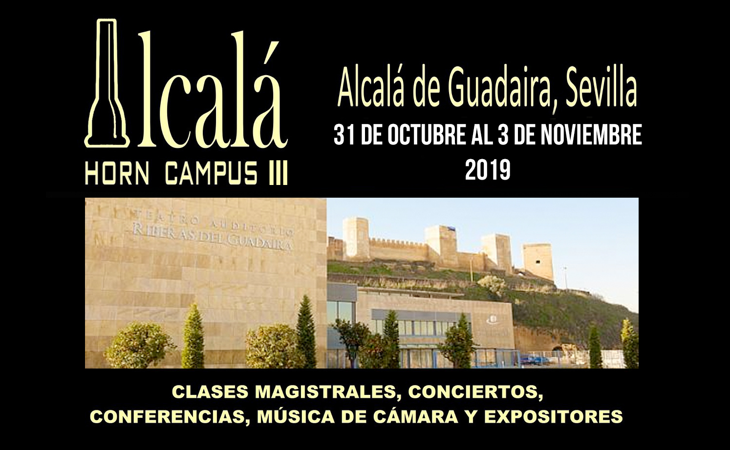 Un año más, MUSIKARTE Instrumentos estará presente en la tercera edición de Alcalá Horn Campus, que se celebrará del 31 de octubre al 3 de noviembre de 2019. La localidad sevilla de Alcalá de Guadaíra, concretamente el Teatro Auditorio Riberas del Guadaira, vuelve a acoger a los trompistas andaluces en un encuentro lleno de clases, conciertos, exposiciones, música y profesores de renombre como: