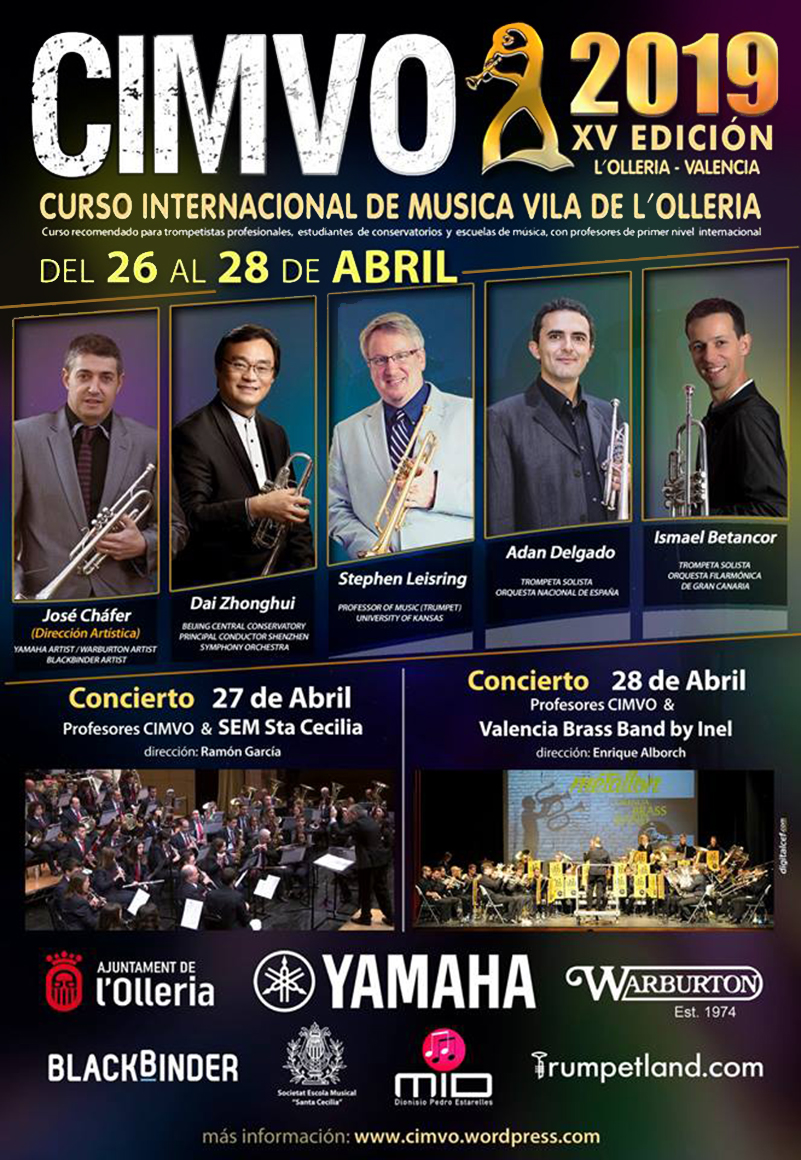 El Curso Internacional de Musica Vila de L'Olleria (CIMVO), que este año celebra su XV edición, tendrá lugar del 26 al 28 de abril de 2019. Un evento académico y artístico.