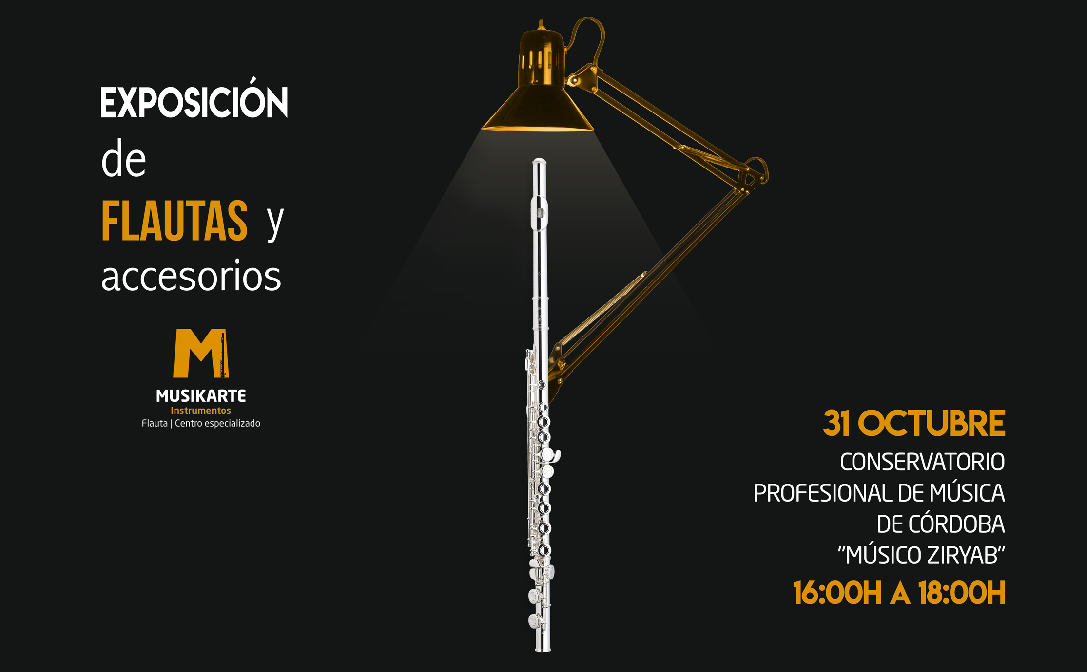 El próximo miércoles 31 de octubre, MUSIKARTE Instrumentos estará presente en el Conservatorio Profesional de Música de Córdoba "Músico Ziryab" (Avd. de los Piconeros, s/n, 14001 Córdoba), con una amplia exposición de Flautas y accesorios.