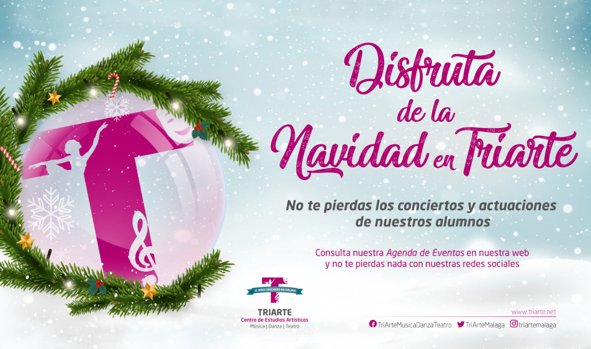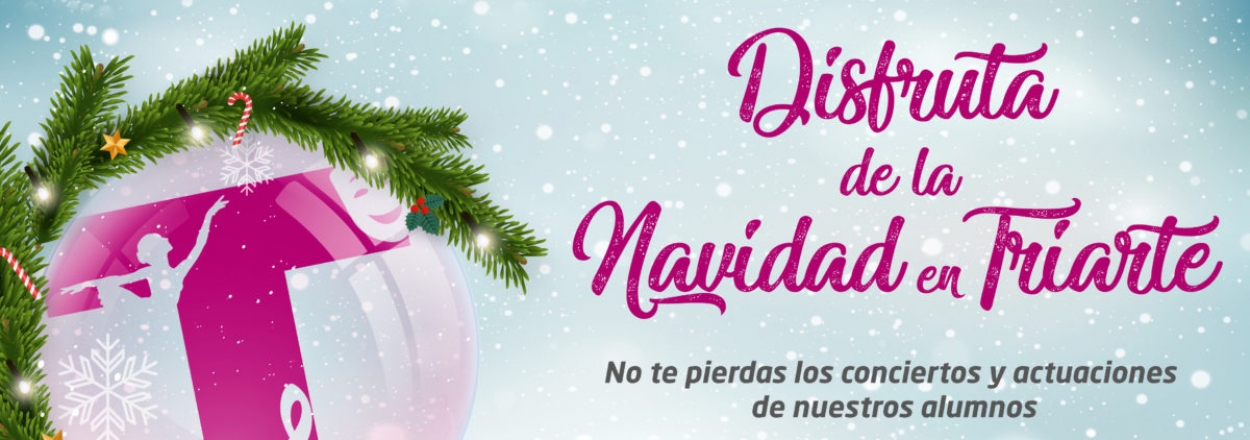 Estas actividades empezarán el próximo 10 de diciembre con los conciertos de Viento, Clarinete, Saxofón, Flauta y Piano y finalizarán el 20 de diciembre con el Concierto de Iniciación a la Música. Además de estos, TRIARTE realizará el Festival Navideño de Danza o el Concierto de Canto y Orquesta Juvenil, puedes consultar todas las actividades y fechas a través de su Agenda.