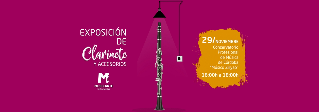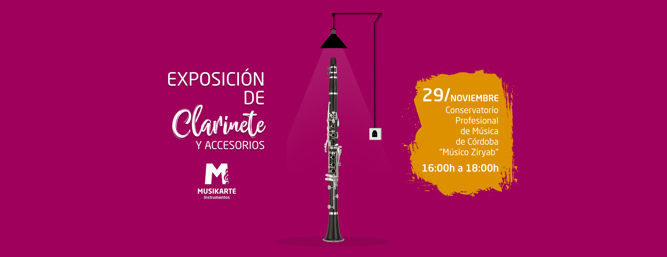 El próximo jueves 29 de noviembre, MUSIKARTE Instrumentos estará presente en el Conservatorio Profesional de Música de Córdoba "Músico Ziryab" (Avd. de los Piconeros, s/n, 14001 Córdoba), con una amplia exposición de Clarinete y accesorios.