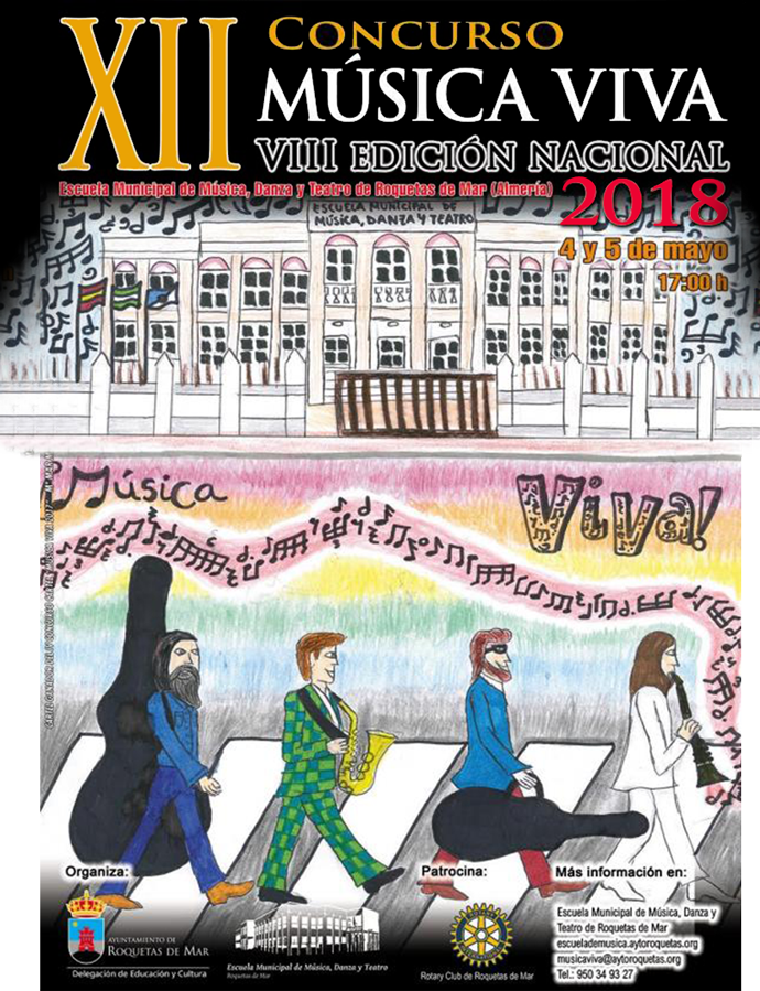 El concurso “Música Viva” 2018 es un certamen de agrupaciones musicales organizado por la concejalía de Educación y Cultura del Ayuntamiento de Roquetas de Mar. Esta ocasión se celebra su duodécimo aniversario y ocho ediciones a nivel nacional, el cual consigue reunir grupos de todos los puntos de la geografía española.