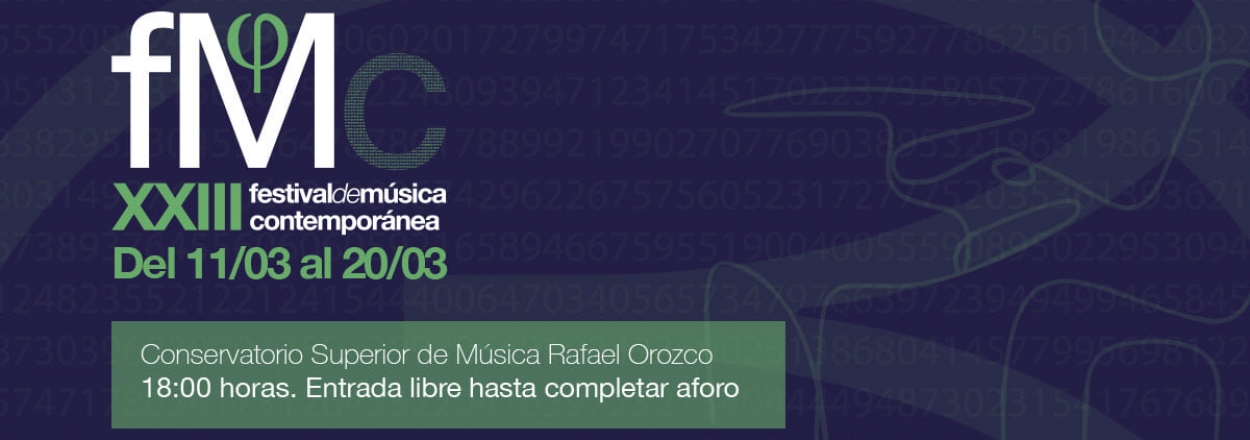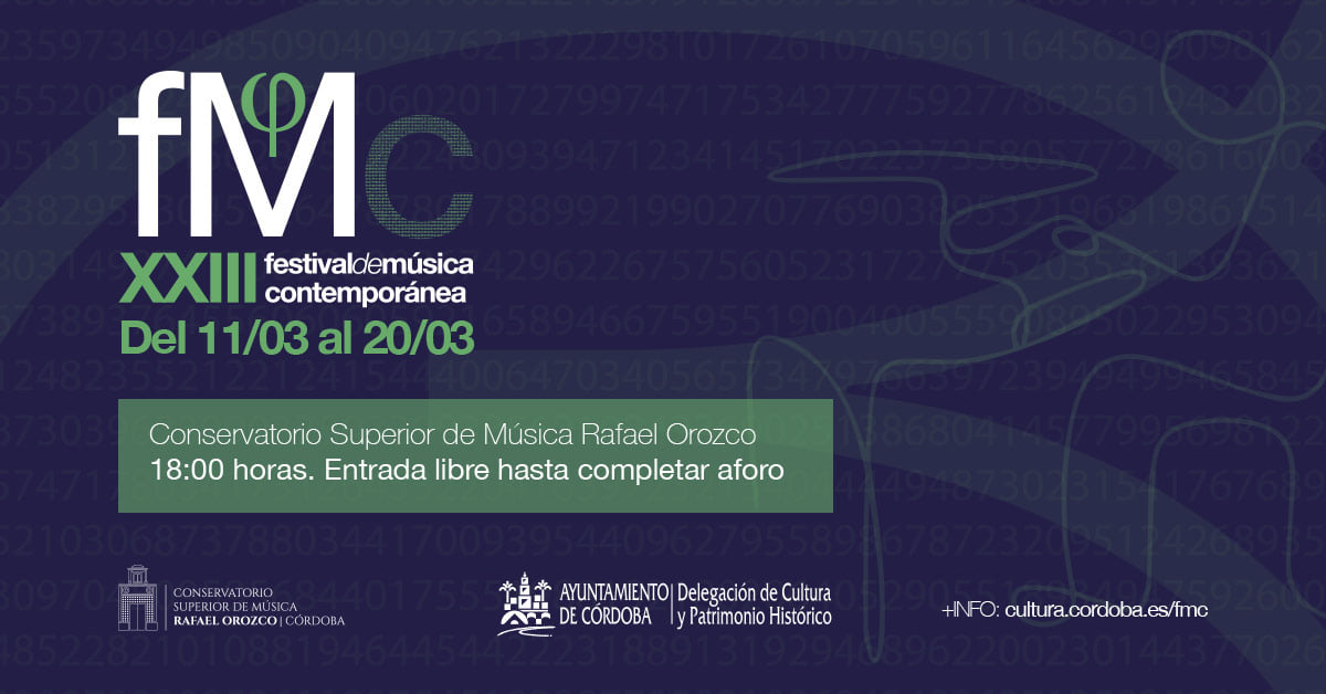 Desde este próximo jueves, 11 de marzo, el XXIII Festival de Música Contemporánea de Córdoba 2021 tendrá lugar en el Conservatorio Superior de Música Rafael Orozco, y acabará el 20 de marzo.