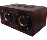 Altavoz multimedia Bluetooth. Potencia 10W (2x5), 2 altavoces. Entrada Aux in, tarjeta de memoria TF y micrófono incorporado. Puerto de carga de 5V. Respuesta de frecuencia de 90Hz a 20Khz. Control de volumen, selección de canción y mode. Acabado en madera. Peso aproximado 500gr. Medidas 15 x 8,5 x 7,5 cm.