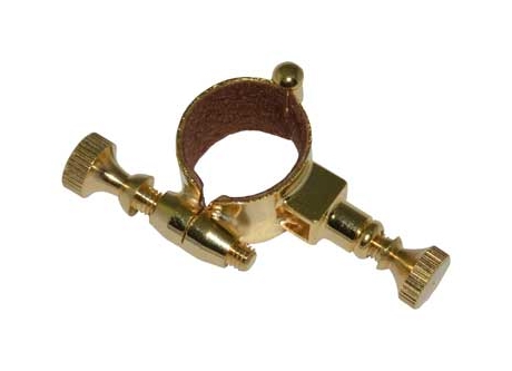 Argolla para corneta. La argolla de Ø18 mm es abierta con bisagra se ajusta al instrumento gracias a su palomilla. La orientación de la argolla está adaptada para colocarlo en el codo de la tubería. Fabricada en latón flexible para que pueda adaptarse mejor y confiera mayor fortaleza. La superficie de contacto de la argolla con la corneta se encuentra recubierta con un material suave para proteger el instrumento. No incorpora atril por lo que la argolla debe colocarse en un atril ya adquirido con anterioridad. Acabado dorado. Peso aproximado 20g. Fabricado en España.