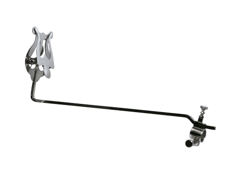 Atril de marcha para trombón con soporte. El soporte de Ø18 mm (nº 3 ) se ajusta al diámetro específico de cada instrumento gracias a su palomilla (sin bisagra). Muelle de acero. Tamaño SUPER, las medidas de la lira son 70 x 55 mm. Atril reforzado con pie y soporte de latón para conferirle mayor fortaleza. Este atril no necesita que el trombón disponga de portatril. Acabado dorado. Peso aproximado 92g. Fabricado en España.