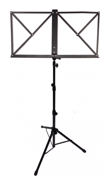 Atril fijo plegable de acero negro. Muy robusto, componenetes metalicos para su suso prolongado. Funda de transporte incluida. Ideal para escuelas y situaciones donde se requiera su uso continuo.