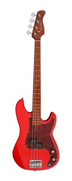 'Marcus Miller Bass. Body Material: North American Alder. Body Shape : Sire Precision Bass Type. Neck Material: 1 Piece Roasted Hard Maple. Neck Shape: C-Shape. Scale: 34''. Fingerboard Material: Roasted Hard Maple (Rolled Edges). Fingerboard Radius: 9.5''. Frets: 2.4mm Medium. String Nut: Bone Nut, 4strings-42mm Width. Binding: None. Inlay: BK Dot. Neck Joint: 4-Bolt Steel Square Plate. Pickups: Marcus Vintage-Precision Revolution Set. Electronics: Passive Volume & Tone Control. Controls: Volume, Tone. Knobs: Chrome Metal Knob. Bridge: Marcus Miller Vintage-S. Tuning Gear: Premium Open-Gear. Hardware Finish: Chrome. Pick guard: Tortoise. Acabado Dakota Red.'