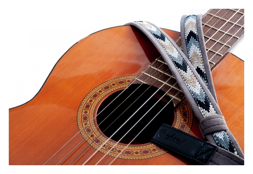 Las guitarras acústicas clásicas no están equipadas con "pines" o tornillos para fijar una correa de correa de dois extremos.Sin embargo, RightOn! ofrece varios diseños de correas específicamente para estas guitarras. Cada correa consiste en un l