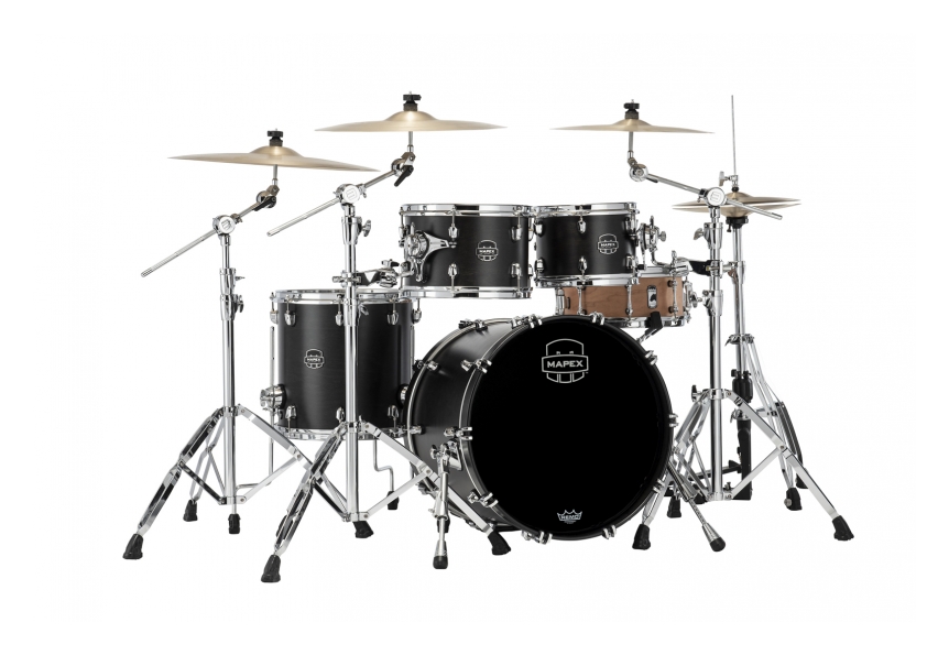 El nuevo esquema de los orificios de ventilación de línea nodal de Mapex le da a la serie Saturn Renew una sensación superior y la cantidad justa de resonancia. Ya sea con una afinación para jazz y fusión o para rock-n-roll, la composición de los cascos en arce y nogal, junto con bordes SONIClear ™, da como resultado toms claros y centrados y un bombo que suena más grande de lo que debería.