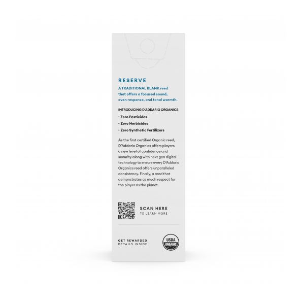 Como primera caña ecológica certificada, D'Addario Organics ofrece a los músicos un nuevo nivel de confianza y seguridad junto con la tecnología digital de última generación para garantizar que cada caña D'Addario Organics ofrezca una consistencia inigualable.