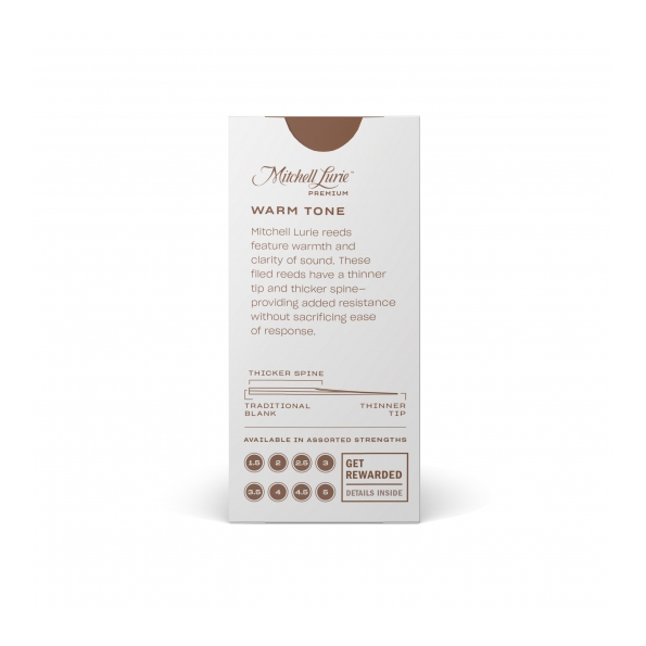 Las cañas Mitchell Lurie producen calidez y claridad de sonido. Estas cañas limadas tienen una punta más delgada y una espina más gruesa, lo que ofrece mayor resistencia sin sacrificar la facilidad de respuesta.