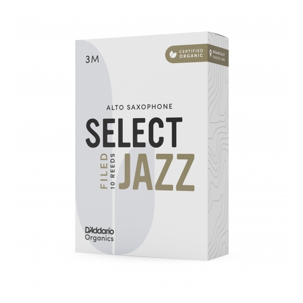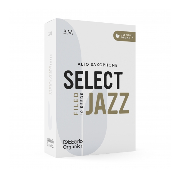 Las cañas Organic Select Jazz ofrecen gran proyección, nitidez y un sonido vibrante. Las cañas Select Jazz, disponibles en modelos limados y sin limar, se venden en durezas en intervalos de un tercio de punto para un acople óptimo con la boquilla.