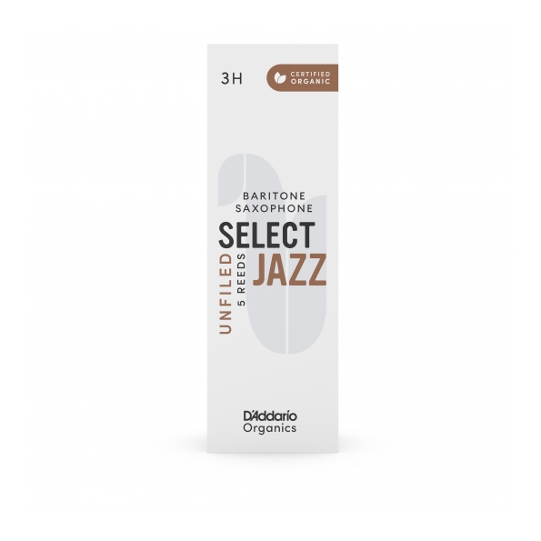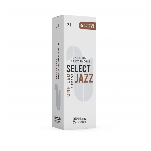 Las cañas Organic Select Jazz ofrecen gran proyección, nitidez y un sonido vibrante. Las cañas Select Jazz, disponibles en modelos limados y sin limar, se venden en durezas en intervalos de un tercio de punto para un acople óptimo con la boquilla.