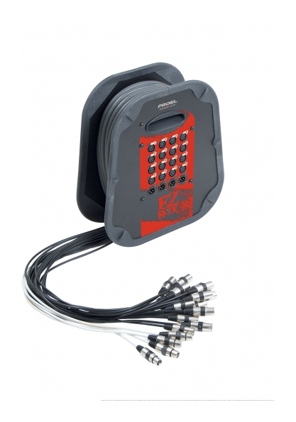 Cajetín de escenario Proel EZBOX1604. Cajetín de escenario con 16 canales de entrada y 4 canales desalida, 15 metros de cable multinúcleo terminadosen conectores XLR.