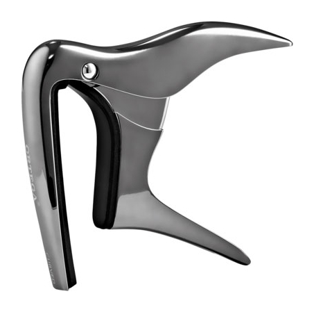 Cejilla de pinza para diapasones CURVADOS en edición especial black chrome. Fabricada en aleación de aluminio. Cojinetes de silicona. Adecuada para guitarras con cejuelas de hasta 52 mm. INCLUYE PRESENTACIÓN EN CAJA NEGRA SATINADA DE LUJO