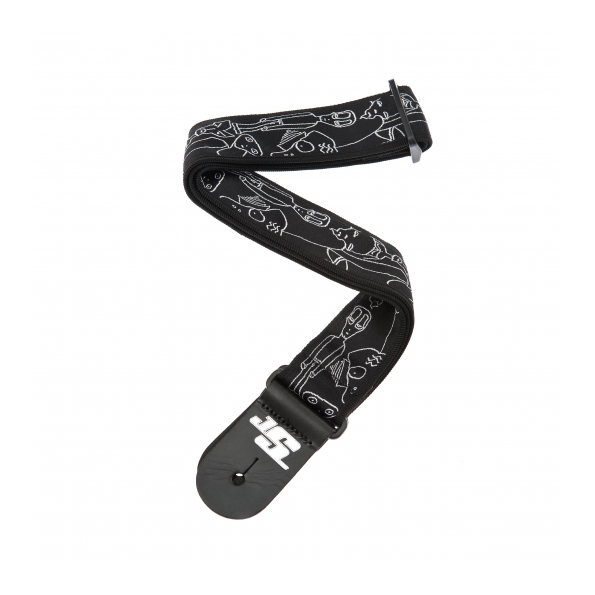 La ilustración «Silver Sketches», dibujada por el propio Joe Satriani, hace de esta correa para guitarra D’Addario una adición exclusiva para cualquier guitarra.