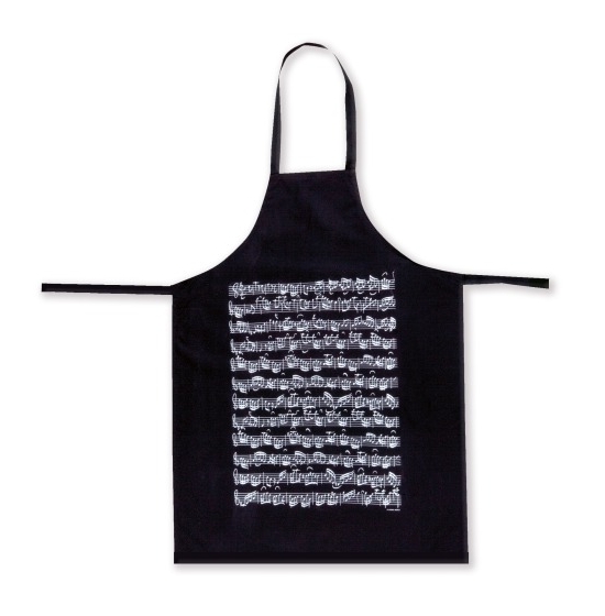 Delantal Negro Pentagramas en Blanco. K 610. VIENNA WORLD. Caprichos Musicales