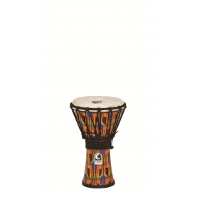 'Djembé de madera 13'' ADJ7-XL. Tallado de una pieza sólida de caoba cultivada en plantación . Cuerpo negro hecho de caoba (swietenia macrophylla) decorado a mano con adornos tallados en negro. Afinado con cuerda de nylon de 4mm. Sección central envuelta con cuerdas en amarillo y rojo fire rhythm series.