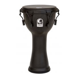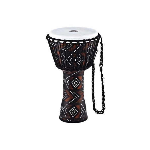 'Djembé de 12''. Los Djembes de la Serie de Travel de Meinl están diseñados para ser portados a cualquier parte. El casco está hecha de plástico, por lo que el instrumento es extremadamente liviano y robusto. El uso de plástico dio a los desarrolladores de producto en Meinl la oportunidad de ahorrar un 20% más de peso en comparación con el modelo de fibra de vidrio. Además, este material liviano también vibra de manera fácil lo que imprime al sonido agudos realmente vibrantes y graves increiblemente profundos.