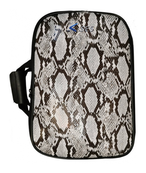 La parte exterior se encuentra acabada con una funda en la que se ha integrado una espaldera transpirable con piquetes de hierro soldado, cordura negro en la zona lateral con cremallera de YKK y un acabado frontal en piel sintética de color.