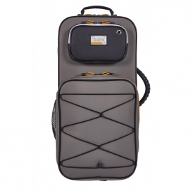 Estuches fabricados con el exterior de polipiel, interior de terciopelo y acolchado de poliuretano inyectado. Mochilas fijas acolchadas, bolsillo con capacidad para partituras y asas con manopla. Medidas externas: 55,5x29x15,5cm. Peso: 2,6Kg. Cabe la sordina.