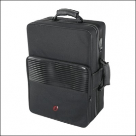 Estuches de poliéster plastificado, interior de velour con acolchado de poliuretano inyectado. Mochila, bolsillos, asas y ruedas.60x25x16cm. 3,9Kg. Bolsillo con capacidad para partituras.