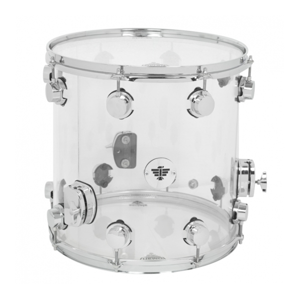 Casco de metacrilato y aros metálicos. Parches Remo.Tom base. Santafedrums.