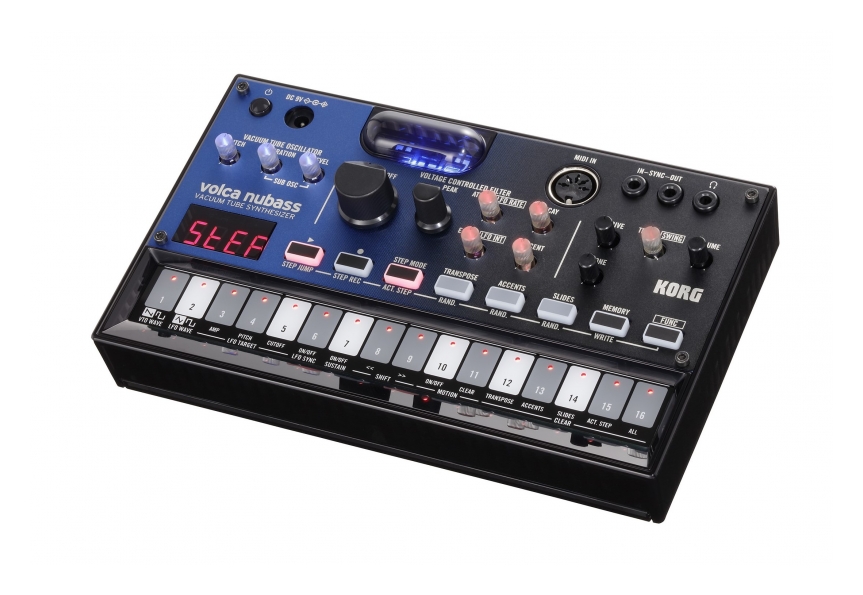 El volca nubass es el primer sintetizador analógico equipado con una válvula Nutube de nueva generación en su oscilador. Válvula de vacío más analógico se traduce en un sonido cálido, grueso y rico. El familiar filtro escalado ofrece el carácter de las máquinas de bajos clásicas, junto al overdrive y a la enorme distorsión. Secuenciador volca de 16 pasos, función Chain para encadenar patrones, grabación de Motion Sequences, Active Step, funciones Acento, Slide y Transpose con opción Randomize para cada función. Altavoz incorporado. Alimentación a pilas o mediante adaptador KA350 opciones.