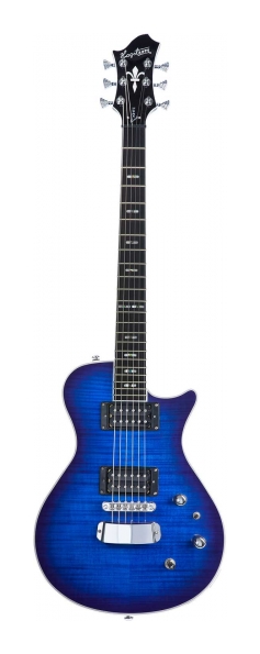 'Ultra Swede - Worn Denim - Basswood Body, Carved Flame Maple Top, Maple Set Neck, Long Throw T-O-M, Hagstrom Sustain Blocks, 2 x Custom 62 Ceramic, 1 x 3-Way Pickup Toggle Switch, 1 x Mini Coil Split, 24.75'' scale length, H-Expander Truss Rod, 15:1 Hagstrom Tuners, Resinator Fretboard'