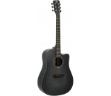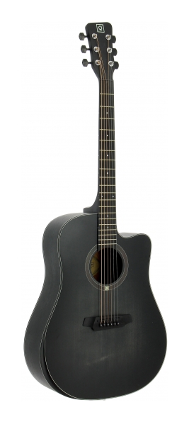 Guitarra electro-acústica con cutaway tipo dreadnought. Sistema confort para mayor comodidad. Tapa laminada de picea. Aros y fondo de sapelly. Puentey diapasón de 'compound rosewood'. Clavijeros cerrados. Cuerdas D´Addario. Previo con volumen y ecualizador independientes. Acabado mate negro.