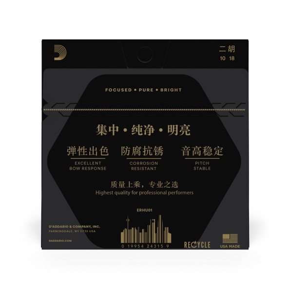 El primer juego de D’Addario para instrumentos tradicionales chinos. El juego de cuerdas ERHU01 se diseñó para conseguir un tono puro, brillante y concentrado que buscan los intérpretes profesionales de erhu.