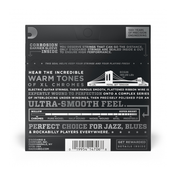 Juego Cuerdas Guitarra Eléctrica D'ADDARIO ECG26 Chromes Flat Wound Medium 13-56