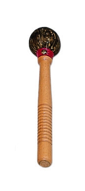 Maza para bombo, normal. Cabeza de cuero Ø 56 mm, mango de madera. Longitud: 280 mm. Peso aproximado 115g. Fabricado en España.