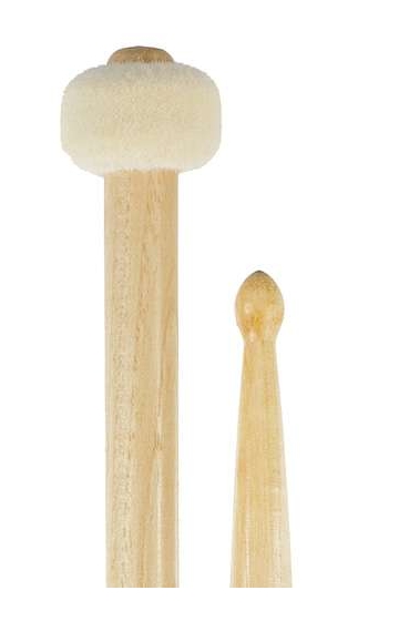 Con una punta de madera 5A en un extremo y una cabeza de fieltro duro en el otro es ideal para aquellas canciones / pasajes que requieren una maza y una baqueta, pero carecen de tiempo para cambiar de uno a otro.