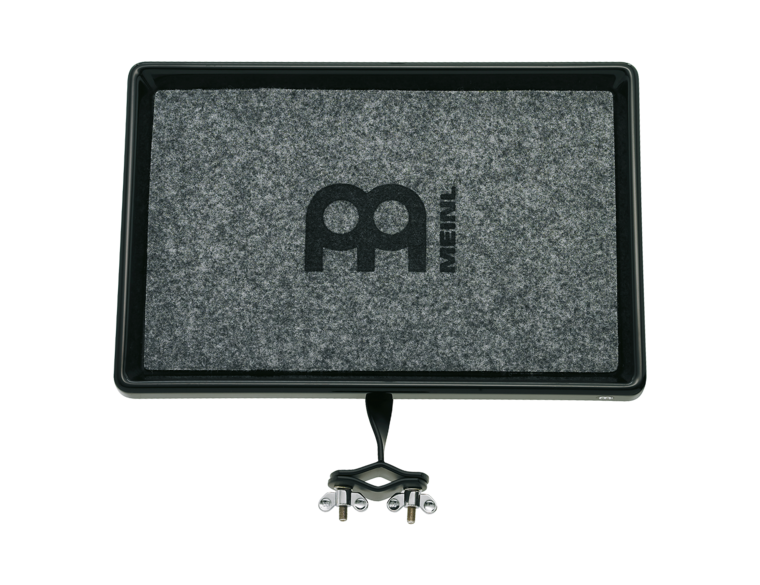 'Mesa para percusión de 18'' x 12'' con grapa para fácil acople. Fabricada en fibra de vidrio ofrece espacio suficiente para varios instrumentos de percusión de mano. Se puede agarras a cualquier pie y la superficie de la bandeja está alfombrada.
