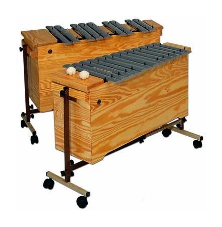 Metalófono bajo, Do-La1 (Fa#, La# y fa# incluidas), cromático. Caja de resonancia de madera laminada. 22 Láminas de aluminio afinadas a 440 Hz. Par de mazas incluidas. Peso aproximado 37Kg. Fabricado en España.