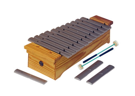 Metalófono soprano, Do2-Fa3, diatónico. Caja de resonancia de madera laminada. 14 láminas de aluminio afinadas a 440 Hz (incluidas Fa2#, La2#, fa3#). Par de mazas incluidas. Peso aproximado 5Kg. Fabricado en España.