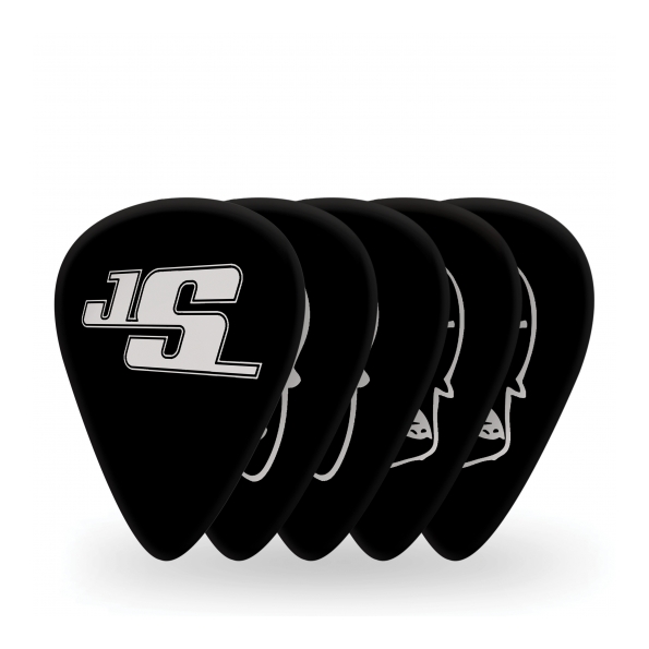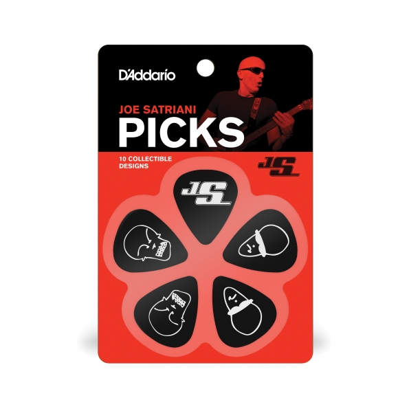 Las púas JS Design están hechas de celuloide de primera calidad y están disponibles en blanco con serigrafía en negro o en negro con serigrafía en plata. Cada pack de 10 incluye 10 diseños originales de Joe Satriani.
