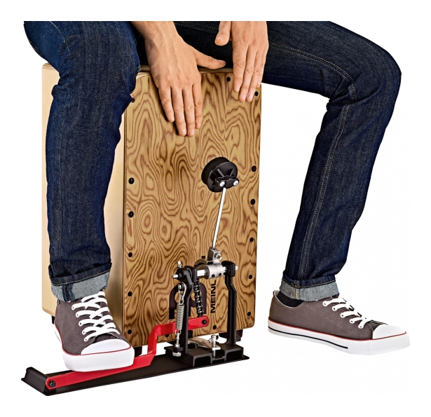Pedal Meinl TMSTCP-2 para Cajón. Toca tu cajón como un bombo. El pedal Meinl TMSTCP-2 tiene un accionamiento directo, que proporciona una transmisión directa y sin pérdidas de la fuerza desde el pie hasta el batidor. Esto hace que el pedal de Cajon sea mucho más preciso que los modelos comparables con cadena o cable. Gracias a la barra en ángulo del batidor, el jugador puede usar la posición de sentado habitual. Al ajustar la tensión del resorte, el pedal Cajon se puede ajustar a la sensación de juego deseada, el dispositivo de sujeción flexible se adapta a todos los modelos actuales de Cajon.