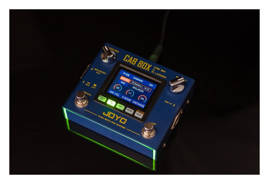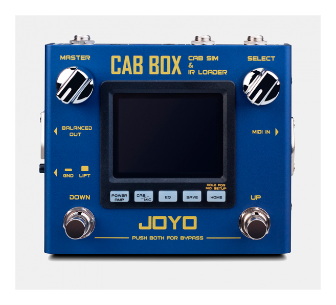JOYO CAB BOX es un pedal de modelado de CABINET, con carga IR compatible. Tiene 4 simulaciones de amplificadores a valvulas 20 modelos de CABINET y 11 modelos de micrófonos clásicos