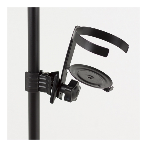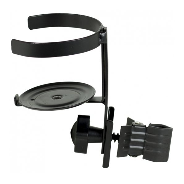 Soporte para bebidas (botellas, vasos, tazas,...) con un diámetro máximo de 90mm. Se engancha al tubo de cualquier soporte con un sistema de pinza. Peso aproximado: 335gr.