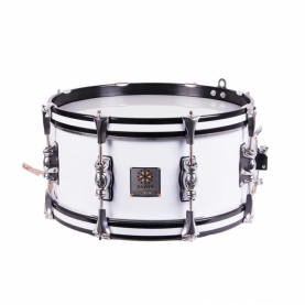 Tambor cofradía Marching Ø38.1 cm/15" x 26 cm, parche poliéster, cuerpo y aros de madera, 8 tensores individuales. Enganche para bandolera. Acabado: NEGRO. Peso aproximado 3,6Kg. Fabricado en España.