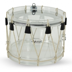 Tambores Graller. Casco de abedul. Aros de haya. Parches Remo UT. Cuerda de cáñamo. Tensores de piel. Acabado Cover Natural (GC0150). Se puede elegir otro acabado de la tabla colores Standard. Sirve la funda cod. 314. Peso: 1,86Kg. Gonalca.