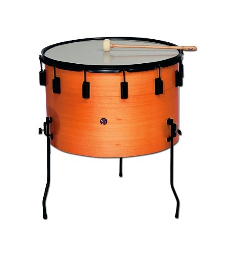 Timbal escuela, parche poliéster. Medidas: Ø40 x 25 cm. Tres patas incluidas. Altura máxima: 42 cm. Acabado: NARANJA. Peso aproximado 3Kg. Fabricado en España.