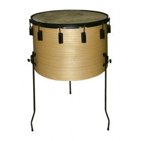 Timbal tradicional Ø40.6 cm / 16" x 40 cm altura, parches piel natural envueltos. Tensión: cuerda. Cuerpo y aros de madera, acabado blanco. Fabricado en España.