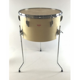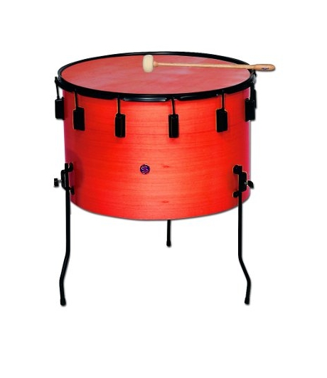 Timbal escuela, parche piel. Medidas: Ø60 x 36 cm. Tres patas incluidas. Altura máxima: 42 cm. Acabado: ROJO. Peso aproximado 5Kg. Fabricado en España.