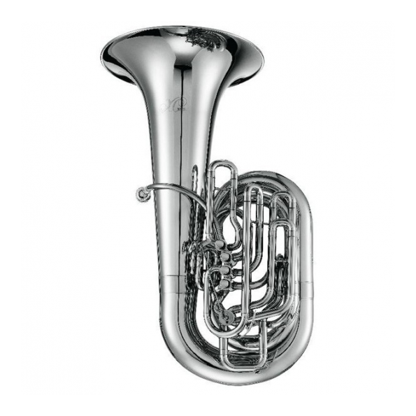 JCB-1284S. TUBA JUPITER en Do. Serie XO. Plateada. 4 Pistones + 1 Cilindro. Tuberia 0.732"-0.787" (18.6-20 mm.). Campana 18" (457 mm.). Peso 11 Kg. Estuche con ruedas.