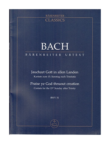 Praise Ye God Thruout Creation. BWV 51/ Study Score. Bach, Johann S.. BARENREITER VERLAG. Voz sop-Tpa-2Vl-Vla-B.C./Org