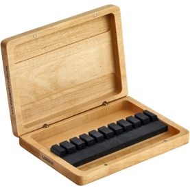 Caja en madera de arce con una tira de goma que agarra firmemente las cañas.